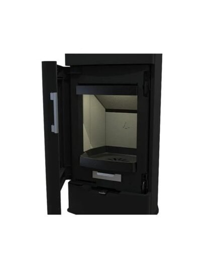 Hergestellt aus robustem Kesselstahl, kombiniert der Ofen Qualität, Funktionalität und Stil. Die große Frontscheibe mit integrierter Scheibenspülung garantiert stets freie Sicht auf das Feuer.